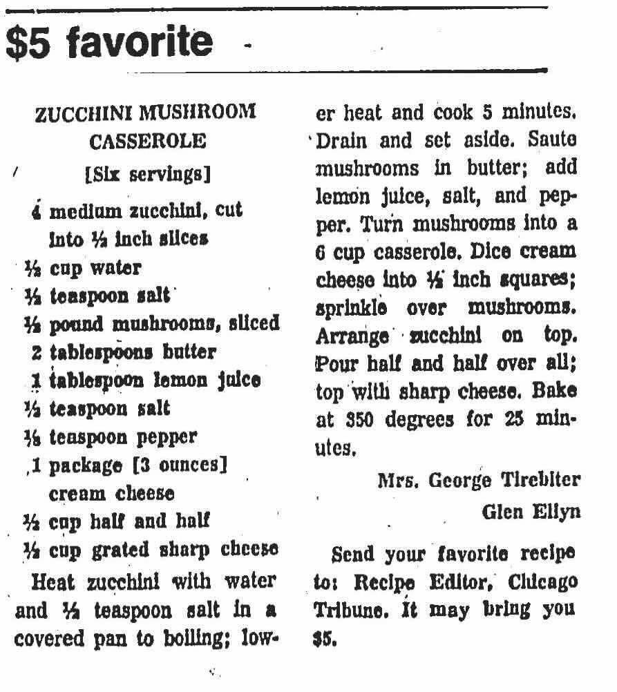 The recipe appeared in the January 13, 1973 issue of the Chicago Tribune.